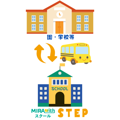 お通いの園・学校等へバス送迎します。活動の様子を共有し、包括的な支援をさせていただきます。
